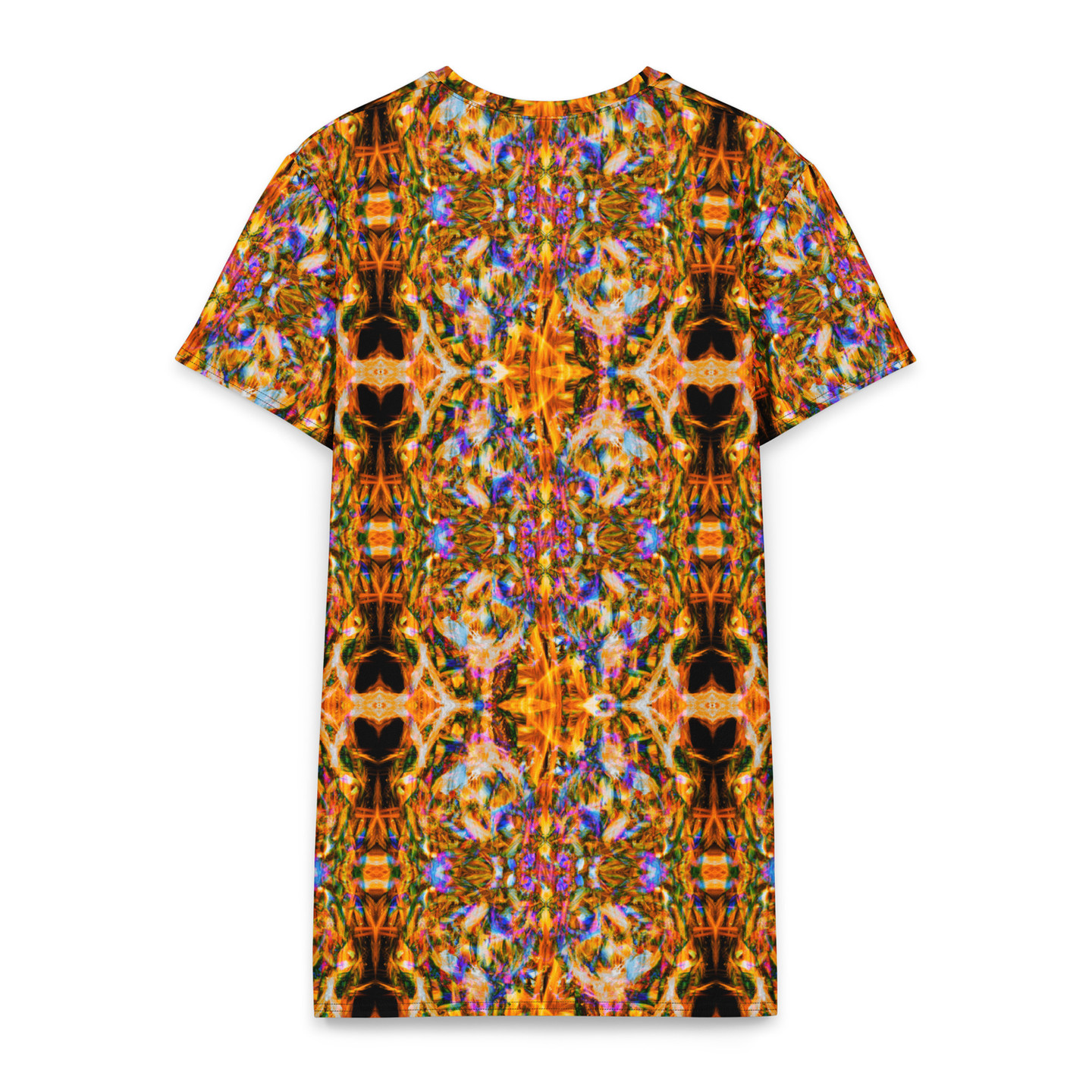 Elevate your fire circle wardrobe with this fire safe Chromadigm Shift HONKLES Cotton T-Shirt Dress. This pattern is crafted from long exposure light images taken at the Gaggle in 2025 and manipulated to create this beautiful 2026 psychadelic design. Crafted from a premium cotton–elastane blend, it offers a comfortable fit with just the right amount of stretch.