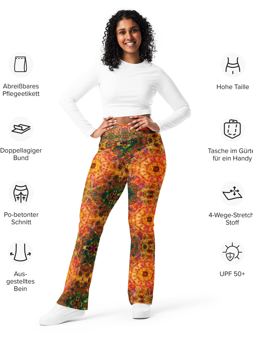 Designed to enhance your figure, these trendy leggings feature a high waist and a butt-lifting cut. The flared leg bottoms add a touch of style and make the leggings comfortable. Wear them on a walk, to the gym, or style them up with a bomber jacket or hoodie.